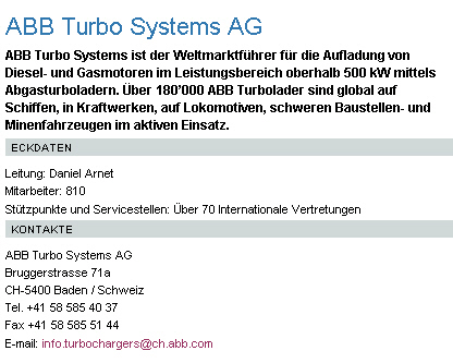 des ABB Konzerns, weltweit führend im Segment Turbolader für Schiffsmotoren. Ihr
